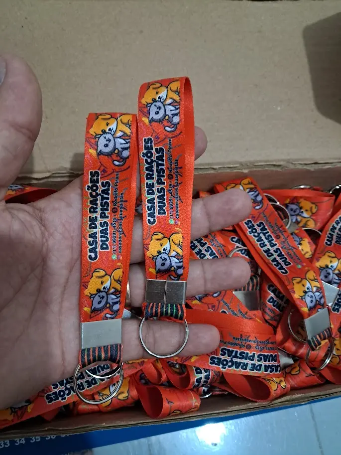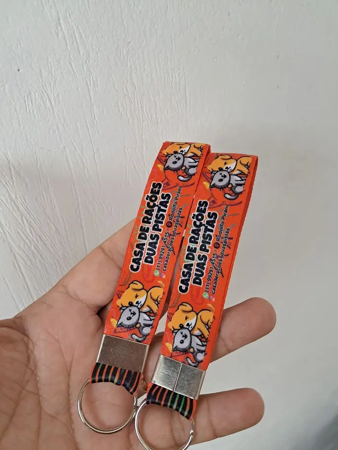 Quer um brinde moderno, leve e cheio de personalidade? O chaveiro cordão com gravação em sublimação é perfeito para destacar sua marca com cores vivas e alta definição.