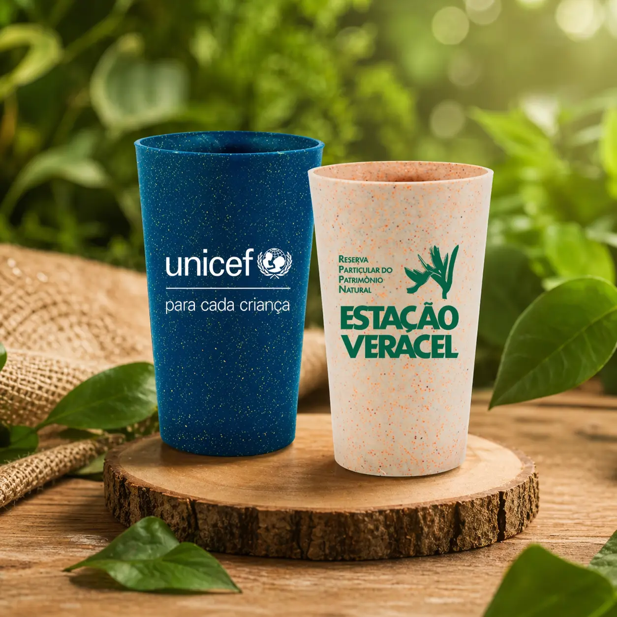 Copo Cancun Green Colors com capacidade para 320ml, sustentável feito com 50% de fibra de madeira e 50% de Plástico Premium (PP), agora disponível em 6 cores especiais que utilizam pigmentos orgânicos na fabricação.
